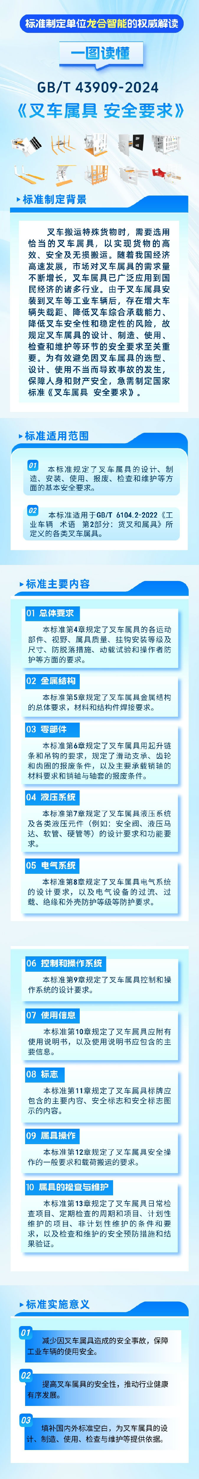 龍合智能裝備制造有限公司自2017年3月開始擔(dān)任屬具工作組組長單位以來,在上級(jí)標(biāo)委會(huì)的指導(dǎo)下、在全體組員的共同努力下,卓有成效地開展了許多工作,為促進(jìn)我國工業(yè)車輛標(biāo)準(zhǔn)體系建設(shè)和促進(jìn)行業(yè)整體技術(shù)進(jìn)步做出了積極貢獻(xiàn)。截至目前,我國工業(yè)車輛屬具專業(yè)領(lǐng)域共有現(xiàn)行有效標(biāo)準(zhǔn)20項(xiàng)(其中國家標(biāo)準(zhǔn)3項(xiàng),行業(yè)標(biāo)準(zhǔn)17項(xiàng));已完成報(bào)批待批準(zhǔn)的行業(yè)標(biāo)準(zhǔn)7項(xiàng);在研的屬具標(biāo)準(zhǔn)制修訂計(jì)劃項(xiàng)目共8項(xiàng)(其中國家標(biāo)準(zhǔn)2項(xiàng)、行業(yè)標(biāo)準(zhǔn)6項(xiàng))。